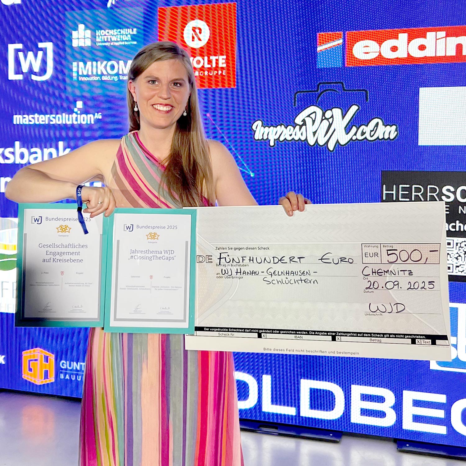 Auch unser Projekt „WJ Care – Mental Health im Fokus“ wurde ausgezeichnet – mit einem tollen zweiten Platz. Mit diesem Projekt setzen wir uns für mentale Gesundheit ein, ein Thema, das gerade für junge Unternehmer:innen und Führungskräfte immer wichtiger wird.